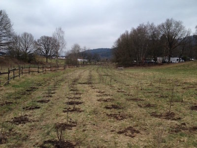 Pflanzung Laubholz und Nadelholz inkl. Anbringung Schutz. Pflanzung 19 tsd Stück mit Hohlspaten.
